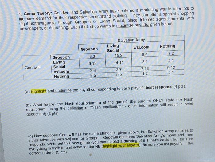 Solved 1 Game Theory Goodwill And Salvation Army Have Chegg Com